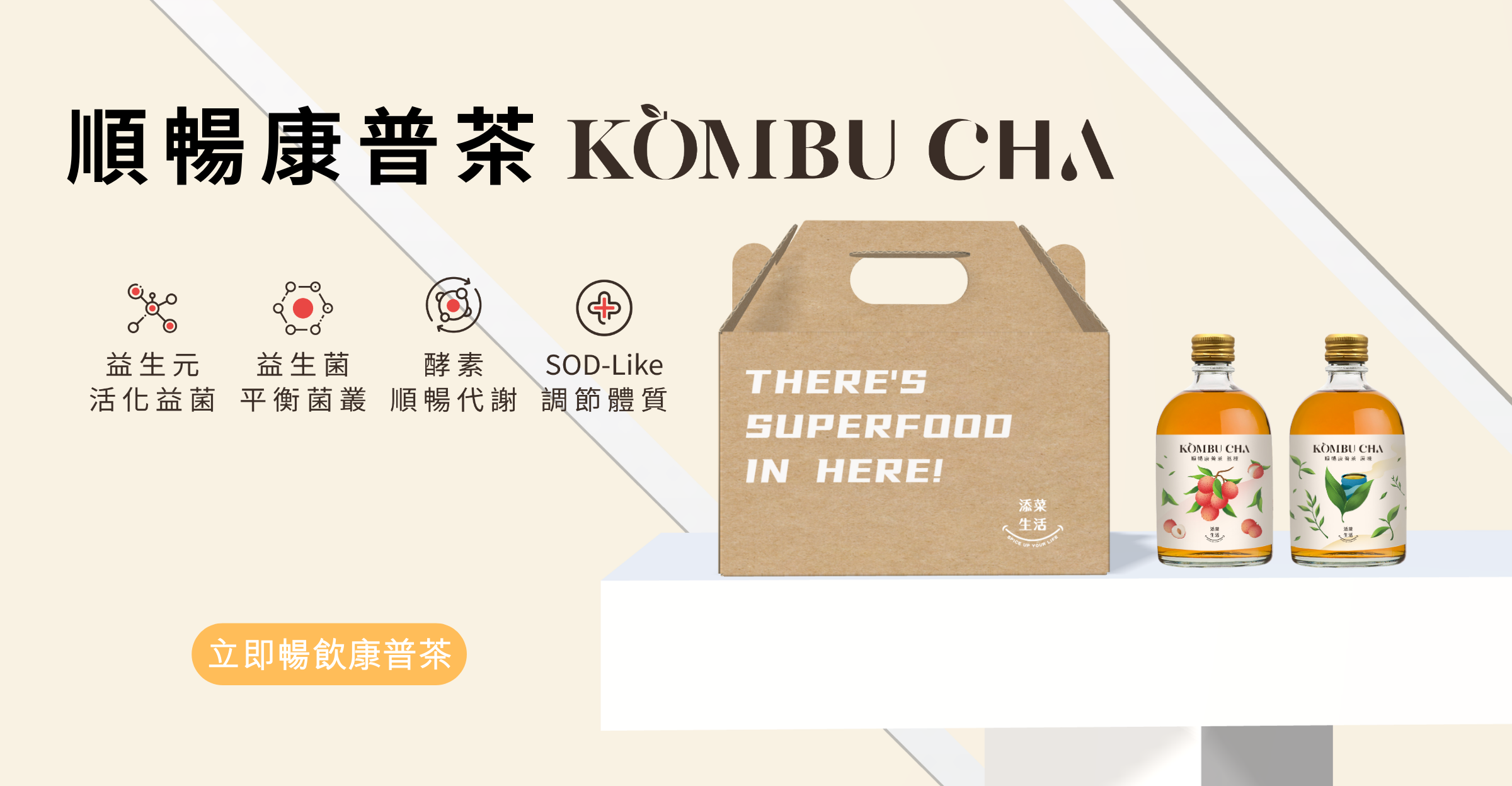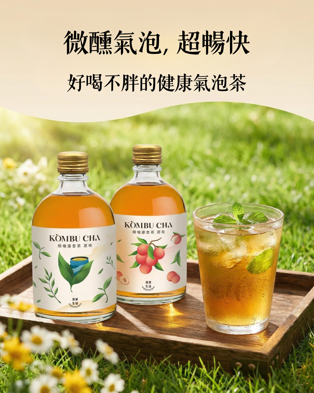 康普茶是結合茶跟醋酸菌、糖類一同發酵的健康茶 發酵過程微生物形成一個有益的菌叢俗稱Scoby紅茶菌 好喝的康普茶取決於用好茶, 以及發酵過程的比例完美的調和 我們把傳統純天然手工釀造的康普茶 採用科技工法、保留三段式釀造工藝 全程符合衛生法規,安全釀造, 成分百分百無添加額外人工調味,零稀釋, 製程全公開讓你喝的安心,順暢有感